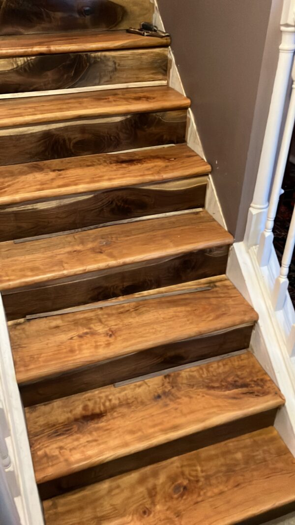 I rebuilt the stairs in our home with solid cherry treads and walnut risers, using wood harvested from my own property to create a truly authentic finish.