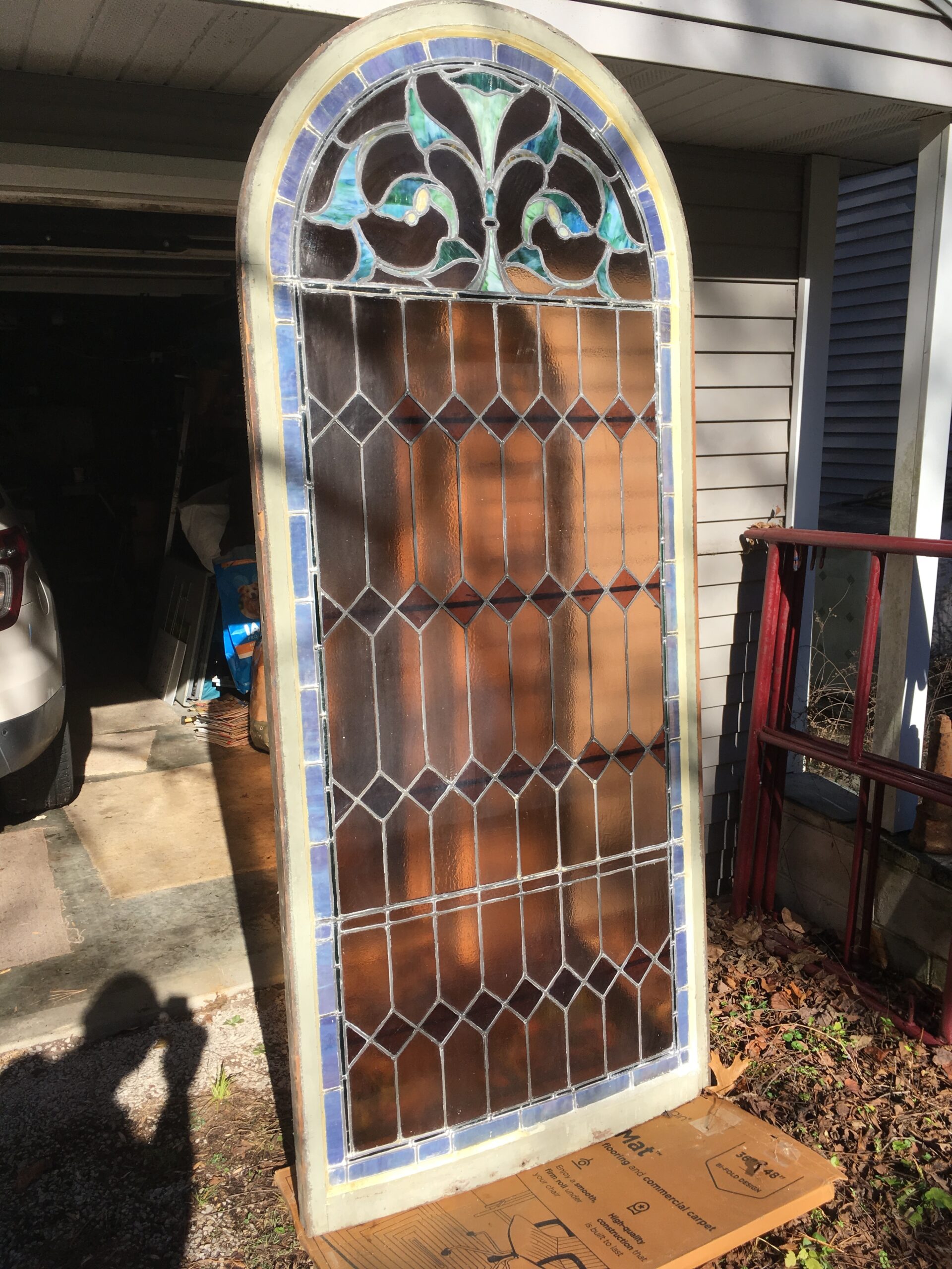 The “Tudor Stained Glass” window is 7ft 8inches tall and has been fully professionally restored. It was recovered from a church in Pennsylvania in the 20th century and is anywhere from 150 to 300 years old. Windows from the same manufacturer are in a 700 yr old castle in England.